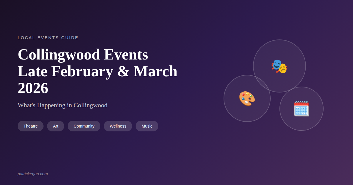 From comedy nights and art exhibits to artisan markets and cultural celebrations, here is what is happening in Collingwood through March 2026. Pink Shirt Day Wednesday, February 26, 2026 Join Collingwood in standing against bullying. The Clock Tower will be illuminated pink, and a flag raising ceremony takes place at 11:00 AM at Town Hall….