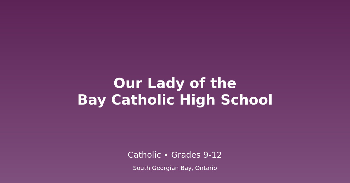 Our Lady of the Bay Catholic High School (formerly Jean Vanier Catholic High School) is the Catholic secondary school serving the South Georgian Bay region. With approximately 525 students, the school offers comprehensive academic programming within a faith-based environment.