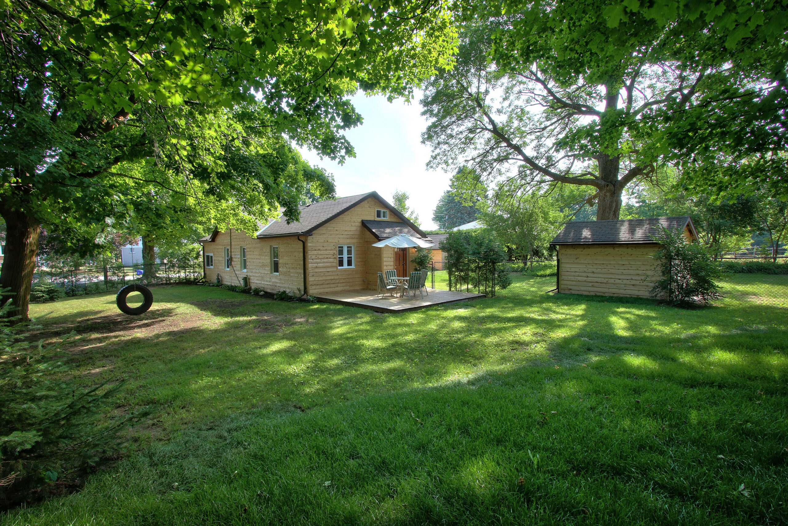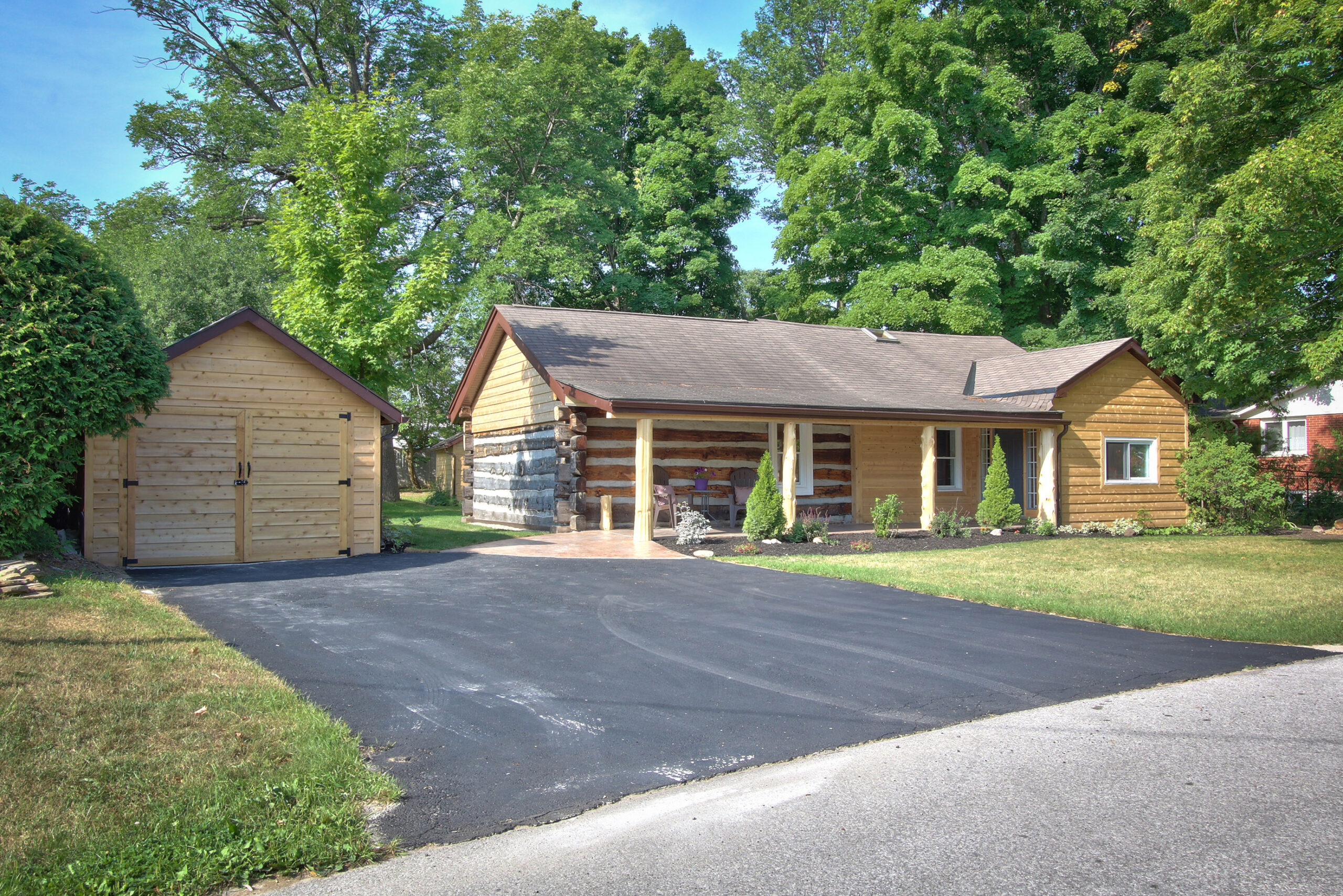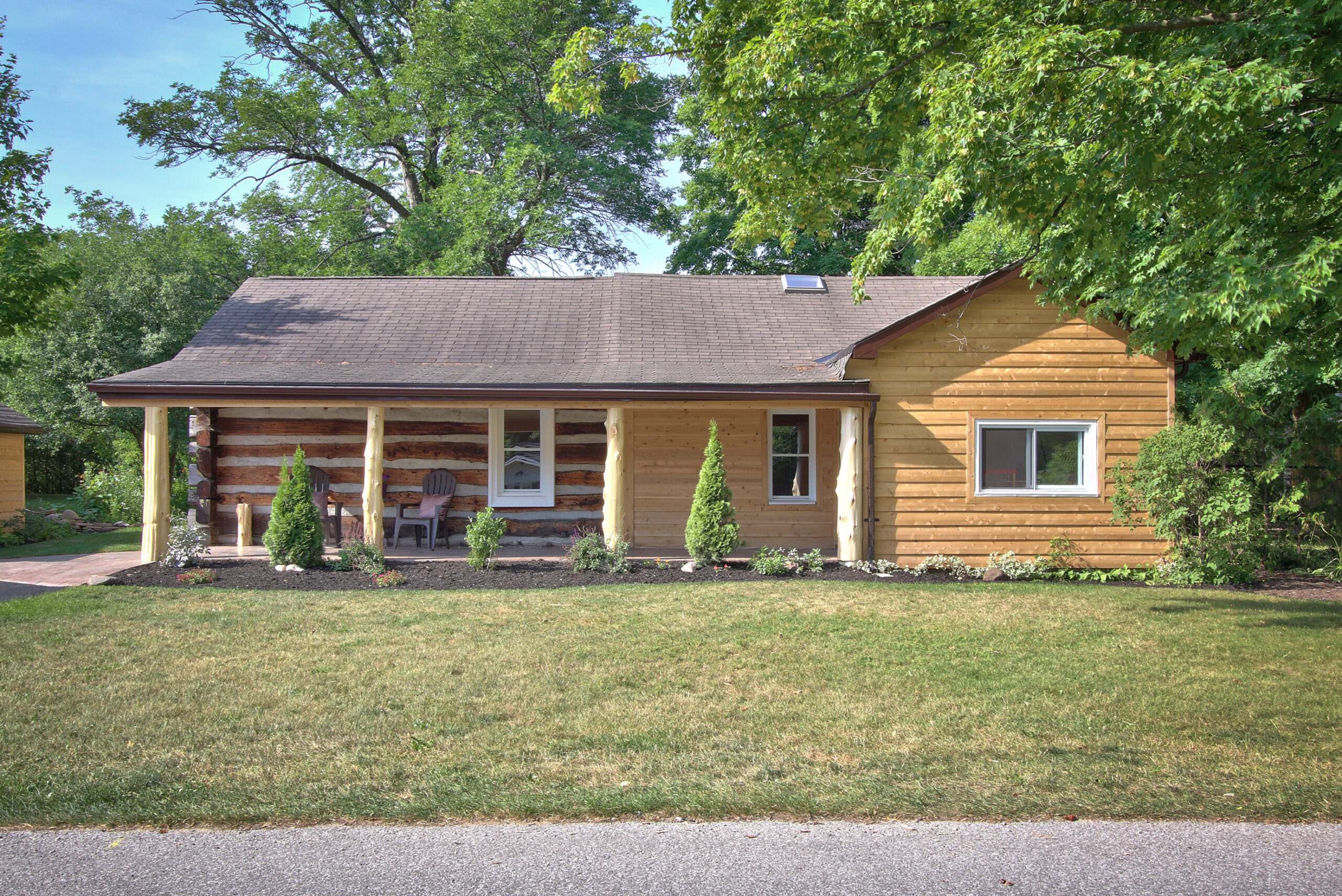 This recently renovated, well-maintained log home is truly one-of-a-kind. Located on a quiet dead end street close to the harbour, this spacious lot is surrounded by mature trees and has the ravine by the Georgian Trail as a stunning backdrop. Yet just down the road is downtown Meaford with all its amenities, restaurants, shops and hospital. A brand new front door and freshly stamped concrete porch welcomes you to this open plan home featuring a large foyer, vaulted ceilings with skylights in the great room, 2 spacious bedrooms and a full bath with corian counter. French doors lead to the kitchen which has just been updated with a new oak countertop. This home is perfect as a weekend retreat or for a recent retiree. The home, garage and garden shed have been refreshed with white cedar siding, all the windows and foundation have recently been spray-foamed and caulked to be more energy-efficient. The finished attic can be used for storage or even a child’s playroom. Additional storage space can be found in the shed, garage and basement, which also houses the new furnace. The completely overhauled garage has a newly poured concrete floor and new barn doors. The backyard offers not only a beautiful environmentally protected view, but also a wood deck, fenced-in area and new landscaping with perennial plants such as hostas, ferns and cedars. Call for your tour today and enjoy country living right in town!