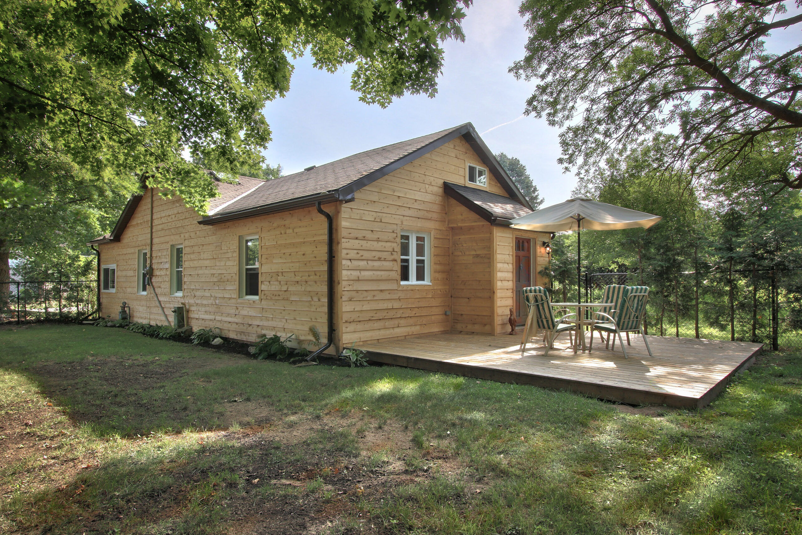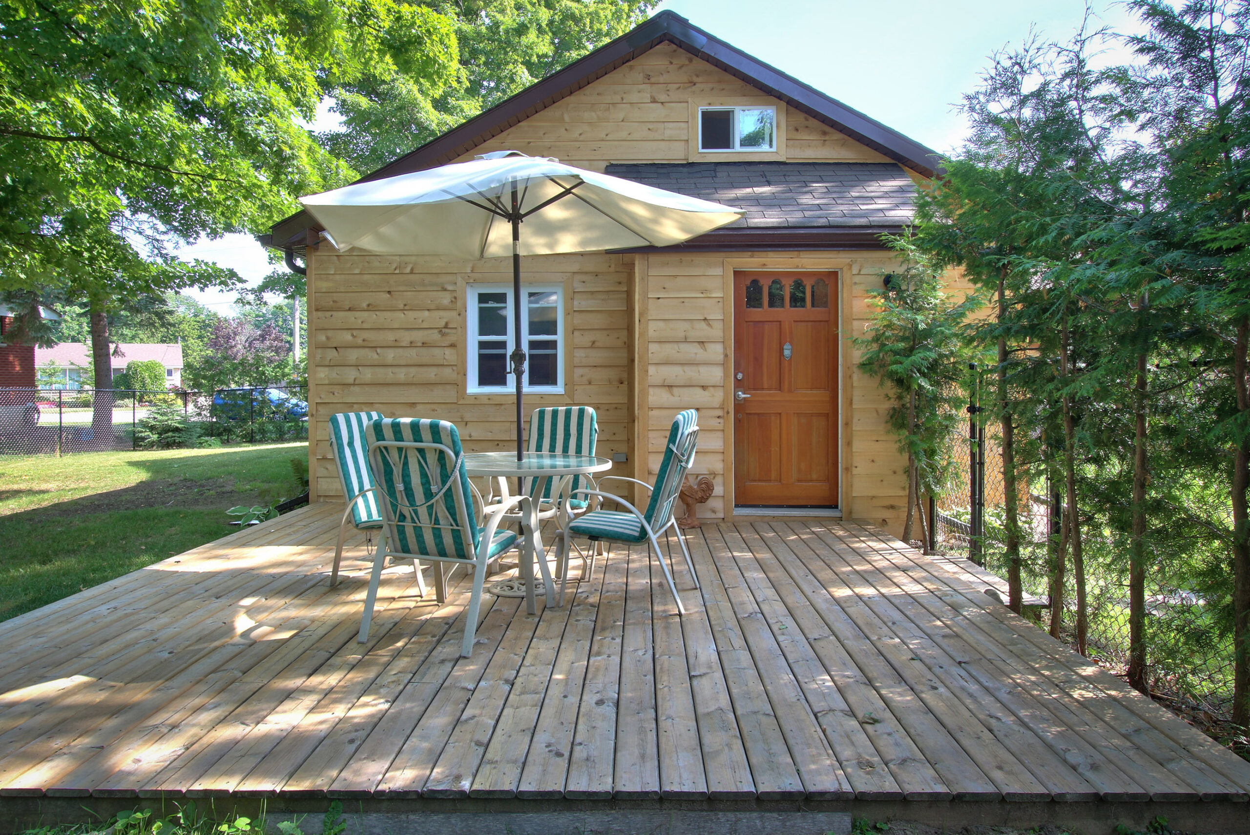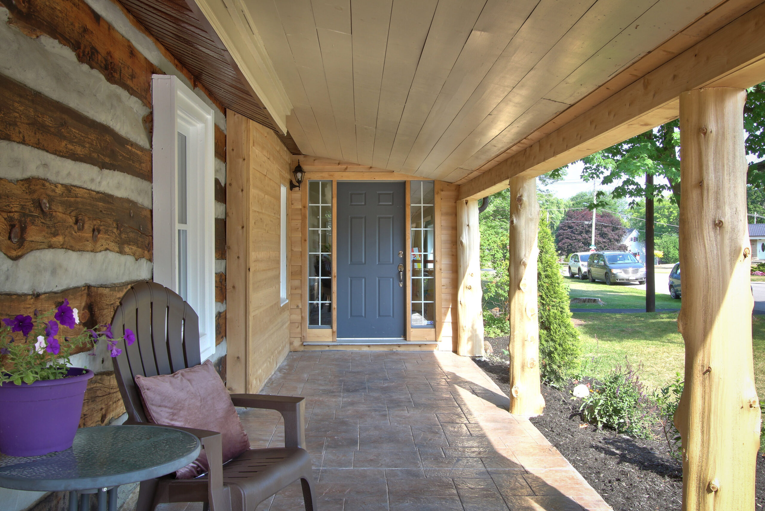 This recently renovated, well-maintained log home is truly one-of-a-kind. Located on a quiet dead end street close to the harbour, this spacious lot is surrounded by mature trees and has the ravine by the Georgian Trail as a stunning backdrop. Yet just down the road is downtown Meaford with all its amenities, restaurants, shops and hospital. A brand new front door and freshly stamped concrete porch welcomes you to this open plan home featuring a large foyer, vaulted ceilings with skylights in the great room, 2 spacious bedrooms and a full bath with corian counter. French doors lead to the kitchen which has just been updated with a new oak countertop. This home is perfect as a weekend retreat or for a recent retiree. The home, garage and garden shed have been refreshed with white cedar siding, all the windows and foundation have recently been spray-foamed and caulked to be more energy-efficient. The finished attic can be used for storage or even a child’s playroom. Additional storage space can be found in the shed, garage and basement, which also houses the new furnace. The completely overhauled garage has a newly poured concrete floor and new barn doors. The backyard offers not only a beautiful environmentally protected view, but also a wood deck, fenced-in area and new landscaping with perennial plants such as hostas, ferns and cedars. Call for your tour today and enjoy country living right in town!