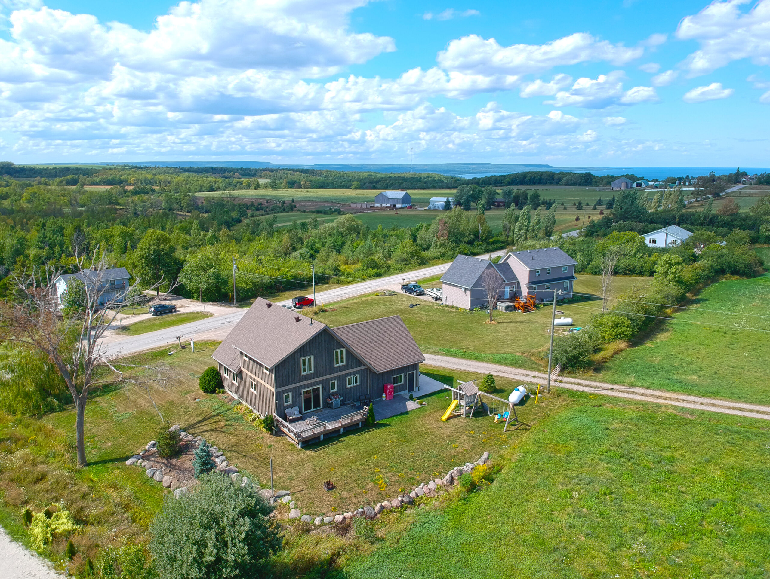 Nestled in the beautiful countryside of Meaford, this recently updated, 4-bedroom board & batten home designed with a contemporary layout but country style exudes the warmth and comfort perfect for raising a family. The open concept, cathedral ceilings and sunny interior welcome you the moment you walk in the front door. Key features of the main floor include a stone-faced gas fireplace, wide-plank wood floors, a bedroom, 3-piece bathroom and laundry room. The large kitchen includes an island, breakfast bar, separate room for a pantry, and walk-out to the back deck. The home is surrounded by views of rolling hills, and golden hay bales. Upstairs hosts an open loft area as well as the master bedroom with 4-piece ensuite and large closet with barn-style doors, and another large, yet charming, bedroom with gas fireplace, built-in drawers and shelves ideal for kids. The finished lower level features a 4th bedroom, large recreational/media space with a stunning barn wood wall as the focal point, lots of storage space and work bench area. An oversized single attached garage offers ample storage for all your toys. This meticulously kept home is only 10 min from downtown Meaford, Thornbury and all amenities. Contact us for your personal tour!